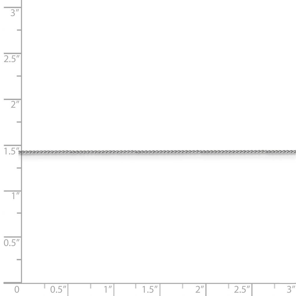 Interwoven figure eight links of polished rhodium-plated 10k white gold form a distinctive, braided design that will add elegance and beauty to your ensemble. This thin 0.8mm wide, 18-inch long, solid link spiga chain necklace closes with a durable lobster clasp.