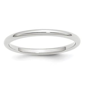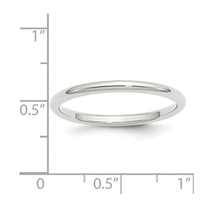A traditional band created from rhodium-plated 10k white gold featuring a classic dome design with a polished finish and a comfort fit shank. It is approximately 1.95mm in thickness (standard weight) and 2mm in width.