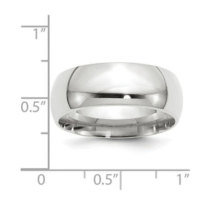 A traditional band created from rhodium-plated 10k white gold featuring a classic dome design with a polished finish and a comfort fit shank. It is approximately 1.95mm in thickness (standard weight) and 8mm in width. Suitable for engraving.