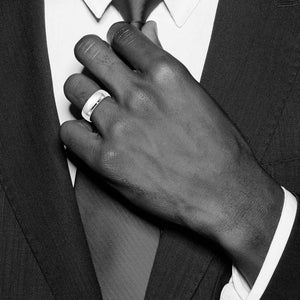 A traditional band created from rhodium-plated 10k white gold featuring a classic dome design with a polished finish and a comfort fit shank. It is approximately 1.4mm in thickness (light weight) and 8mm in width. Suitable for engraving.
