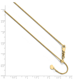Solid polished links of 10k yellow gold are plaited together to create a round braided design for this 1mm width necklace chain with a sliding lobster claw clasp. While this style is not as flexible or liquid-like as some other styles, it will complement your favorite charm or pendant to perfection with its intricate design and is adjustable to any length up to 22 inches. Made in Italy.