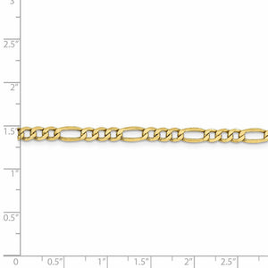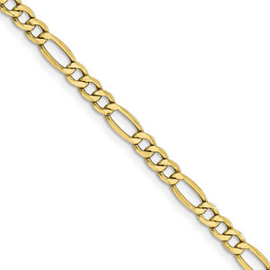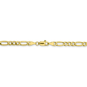 Round and oval hollow links made of polished 10k yellow gold interlock in a reoccurring three and one pattern that closes with a lobster claw clasp. The easy elegance of a Figaro chain necklace looks great with dress or casual wear and the 4.75mm width, 18-inch length provides versatility for both men and women.