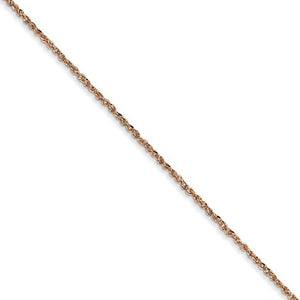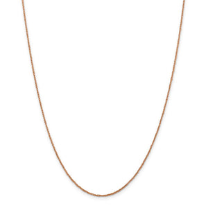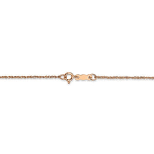 Classic appeal with a modern design, this delicate ropa chain necklace features a twinkling diamond-cut finish created from 14k rose gold. It measures 1.1mm in width by 16-inches in length and closes with an easy to use lobster claw clasp.