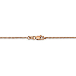 Strands of 14k rose gold are braided and woven together to create a spectacular wheat pattern for this 1mm width chain that closes with a lobster-claw clasp. It features a solid link construction with a sparkling diamond-cut finish. 18 inches in length.