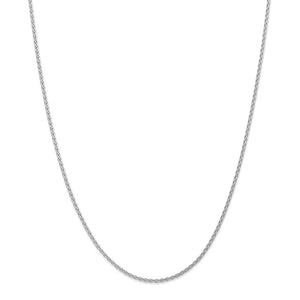This beautiful chain intricately woven from rhodium-plated 14k white gold features a solid link, Parisian wheat pattern with a smooth polished finish. Crafted in the USA, this 1.75mm width necklace chain comes complete with a lobster-claw clasp for a reliable fit. 16 inches in length.