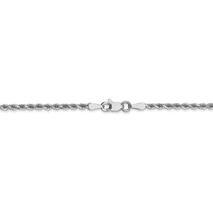 Spiraling rope chains made of 14k white gold enhanced with diamond-cuts are extremely popular because they offer a classic design with maximum shine. Flexible and strong, this 22-inch necklace chain is 2mm in width and fastens with a lobster claw clasp.