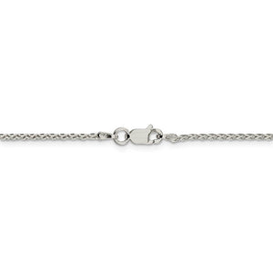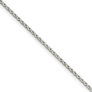 Interwoven solid links of rhodium-plated sterling silver form a distinctive braided design that will add elegance and beauty to your favorite charm or pendant. This 1.5mm wide spiga/wheat chain features a dazzling diamond-cut finish, a lobster clasp and is 16-inches in length.