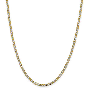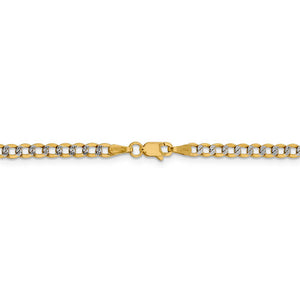3.4mm 14k Yellow Gold & Rhodium Hollow Pave Curb Chain Necklace
