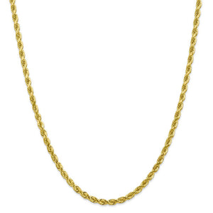 Twisting strands of solid 10k yellow gold form an intricate spiral pattern on this classic rope chain accented with a diamond-cut details and finished with a lobster claw clasp. Designed to provide the perfect combination of beauty, strength and integrity, this 4mm width, 26-inch long necklace chain is a 'must have' fashion accessory!