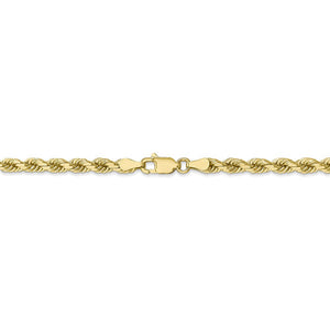 Twisting strands of solid 10k yellow gold form an intricate spiral pattern on this classic rope chain accented with a diamond-cut details and finished with a lobster claw clasp. Designed to provide the perfect combination of beauty, strength and integrity, this 4mm width, 22-inch long necklace chain is a 'must have' fashion accessory!