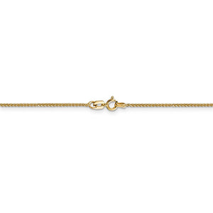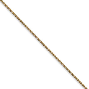 Interwoven figure eight links of diamond-cut 14k yellow gold form a sparkling braided design that will add elegance and beauty to your favorite charm or pendant. This delicate 1mm wide, 18-inch long solid spiga chain necklace closes with a classic spring-ring clasp.