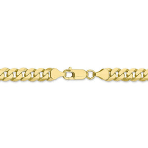 Flat curb links of 10k yellow gold enhanced with beveled edges form an attractive necklace that looks great alone or layered with multiple chains to complete your desired style. It features solid links that measures 7.25mm in width by 24-inches in length and closes with a reliable lobster clasp.