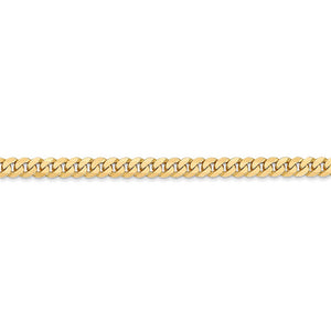 Flat curb links of 14-karat gold enhanced with beveled edges form an attractive bracelet that looks great alone or layered with multiple chains to complete your desired style. It measures 3.2mm in width and includes a secure, lobster-claw clasp to keep it safely in place. 9 inches in length.