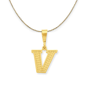 Make your mark and create a look that is all about you or special loved one with a bold block initial pendant. This 14k yellow gold design features raised edges with a rhombus-shaped textured center and a textured back. Each letter measures approximately 14mm (9/16 inch) in length and dangles from a polished tapered bail giving it an overall length of approximately 25mm (1 Inch). The pendant is Includes a 30 Inch, 0.8mm 14k yellow gold cable chain with a lobster clasp.
