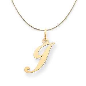 14k Yellow Gold, Ella Med Fancy Script Initial J Necklace