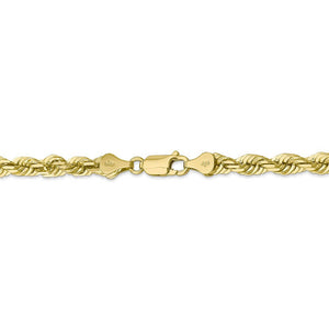 Twisting strands of solid 10k yellow gold form an intricate spiral pattern on this fabulous rope chain accented with a diamond-cut finish and finished with a lobster claw clasp. Designed to provide the perfect combination of beauty, strength and integrity, this 6mm width 7-inch long classic bracelet chain is a must have fashion accessory!