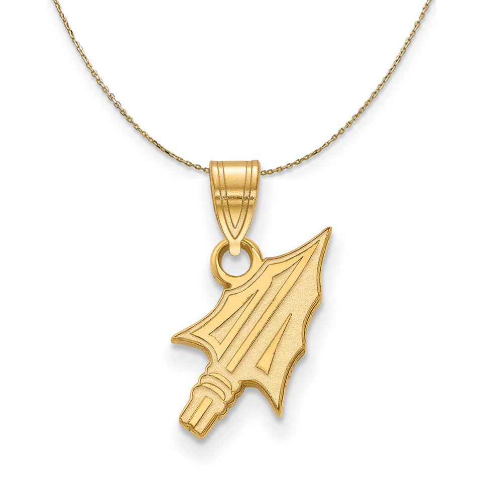 If you are a fan of Florida State University and the footbal team then you need to show your school spirit with this Florida State University pendant. We are a certified college jewelry retailer and this authentic item is officially licensed. It is crafted from 14k Yellow Gold and crafted by LogoArt in the USA. Includes a 16 inch, 0.8mm 14k yellow gold cable chain with a lobster clasp.