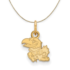 If you are a fan of The University of Kansas and the Jayhawks then you need to show your school spirit with this University of Kansas pendant. We are a certified college jewelry retailer and this authentic item is officially licensed. It is crafted from 14k Yellow Gold and crafted by LogoArt in the USA. Includes a 18 inch, 0.8mm 14k yellow gold cable chain with a lobster clasp.