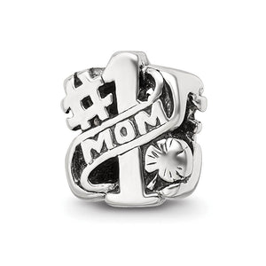 Sterling Silver #1 Mom Bead Charm - Black Bow Jewelry Company