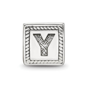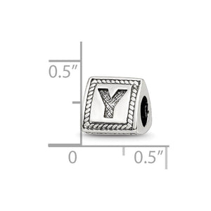 Triangle Block, Letter Y Sterling Silver Bead Charm - Black Bow Jewelry Company