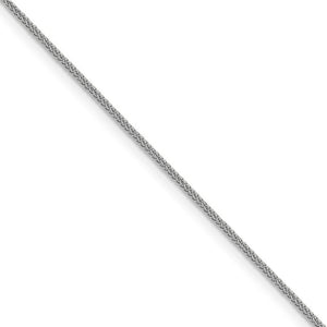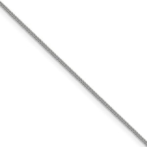 Complement just about any charm or pendant with a wheat style chain featuring a unique square design accented with diamond-cut details that catch and reflect the light with every movement. This delicate necklace chain is made of 14k white gold, measures 0.8mm in width by 18 inches in length and closes with a reliable lobster claw clasp.