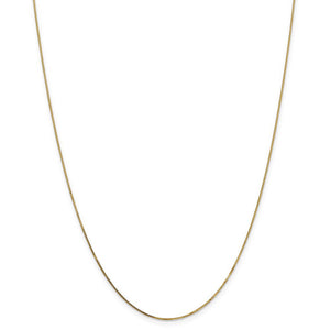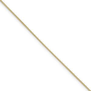 Simple, classic and ready for your favorite pendant, this delicate nickel free 14k yellow gold box chain necklace is 0.8mm in width by 18-inches in length and closes with a classic lobster claw clasp.