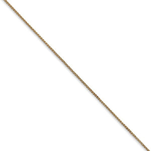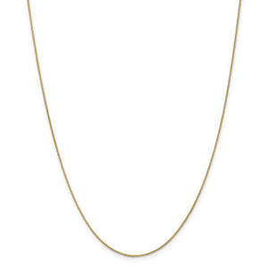 Interwoven figure eight links of polished 14k yellow gold form a distinctive, braided design that will add elegance and beauty to your favorite charm or pendant. This delicate 0.8mm wide, 24-inch long solid spiga chain necklace closes with a classic spring-ring clasp.