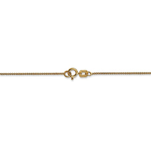 Interwoven figure eight links of polished 14k yellow gold form a distinctive, braided design that will add elegance and beauty to your favorite charm or pendant. This delicate 0.8mm wide, 16-inch long solid spiga chain necklace closes with a classic spring-ring clasp.