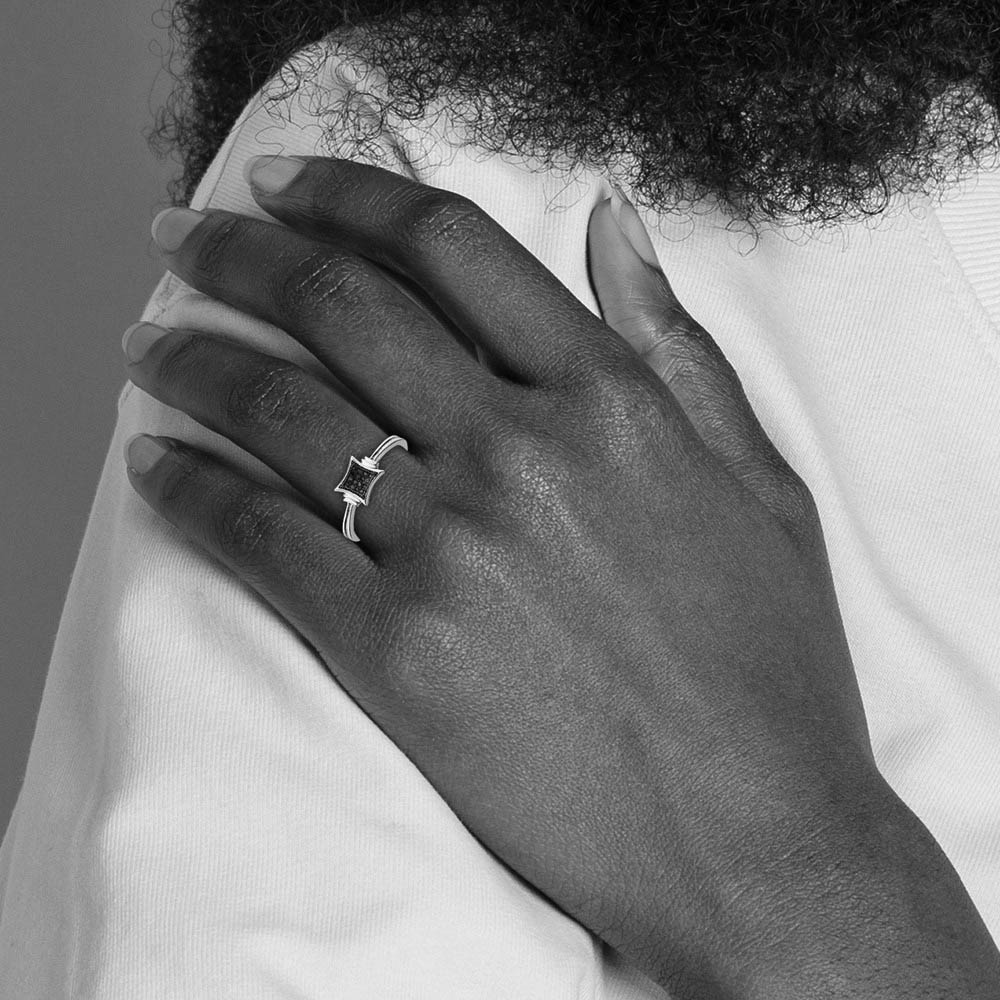 1/20 Ctw Blue Diamond 6mm Concave Square Ring in Sterling Silver