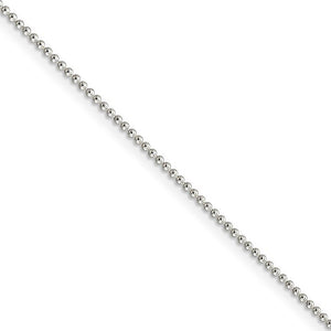 Small round balls gleam along the length of this polished sterling silver chain that measures 1.25mm in width. It features a hollow link design that provides lightweight comfort and comes ready to wear with a secure, lobster-claw closure. 16 inches in length.