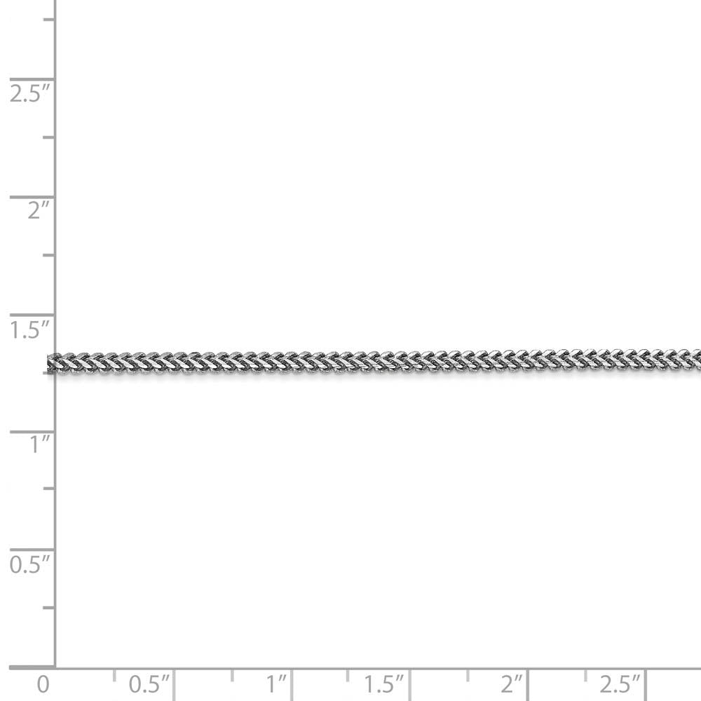 Fashioned from solid 14k white gold, this stunning Franco chain with its flexible and resilient design is the perfect choice for when you want to make a soft feminine statement. Measuring 1.5mm in width, this polished chain closes securely with a lobster-claw clasp. 7 inches in length.
