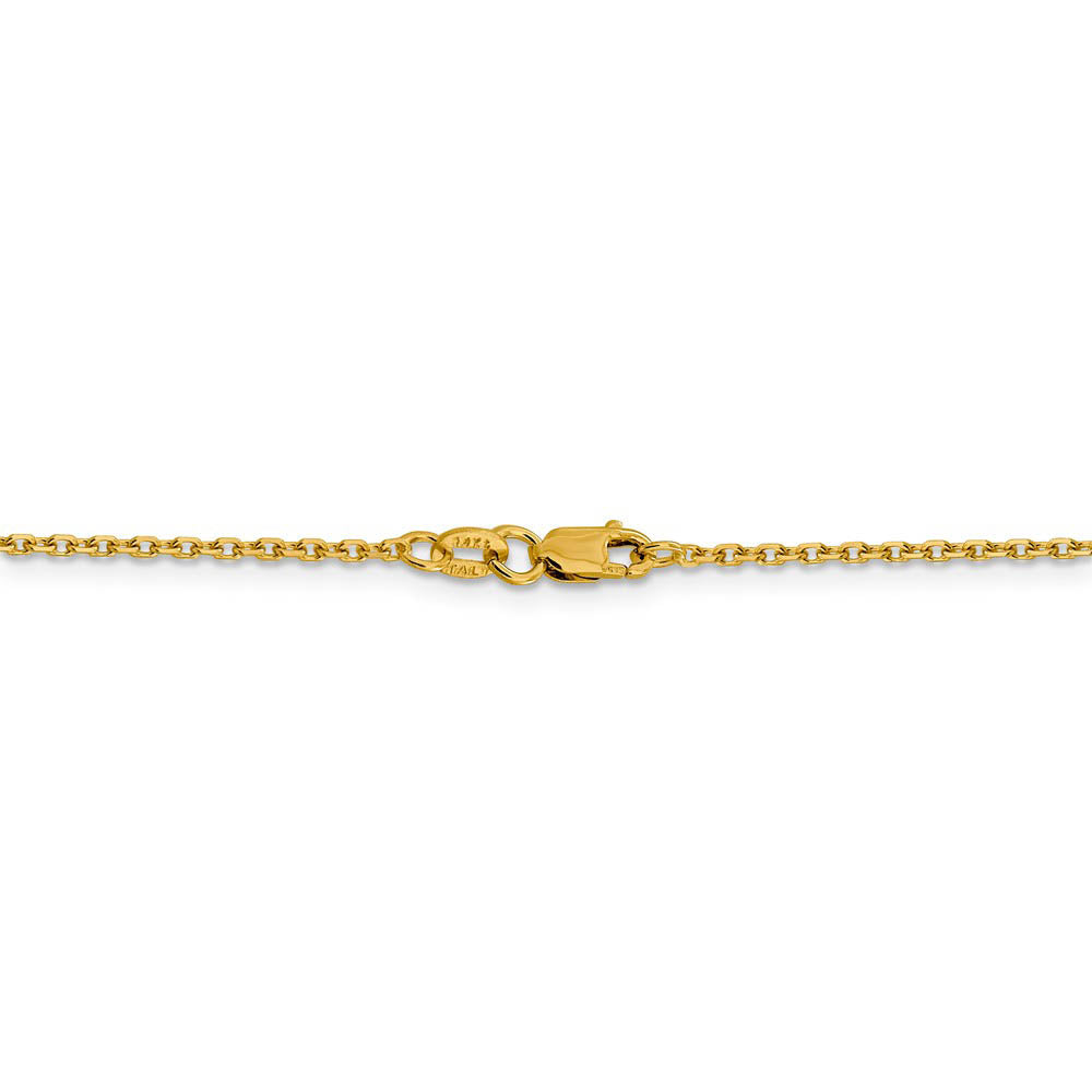 Broad solid links alternating in direction form a subtle backdrop for your favorite necklace charms and pendants. It is created from 14k yellow gold with a sparkling diamond-cut finish, measures 1.5mm in width by 18-inches in length and is finished with a lobster claw clasp. Made in Italy.