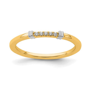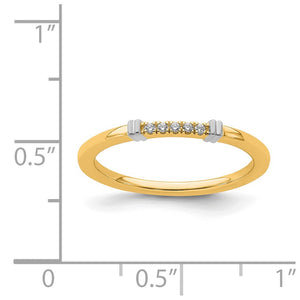 Make it simple and stylish with bands of different textures, finishes, widths and colors or extravagant with diamonds and gemstones! This two-tone stackable ring created from 14k yellow and white gold features 5 genuine diamonds that are I2 in clarity and I-J in color. The total diamond weight is .4 carat. The approximate band width is 1. Mm. Guaranteed to fit together perfectly with all of the mix and match Stackable Expressions rings.