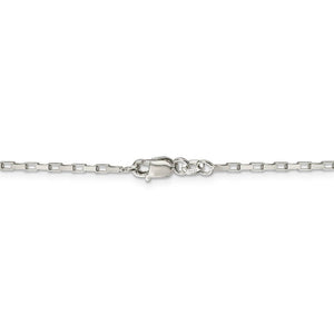 This beautiful sterling silver chain with its simple style and radiant finish is a great choice for those looking to make a unique fashion statement. The open elongated box links measure approximately 1.65mm in width by 24-inches in length and close with a lobster law clasp.