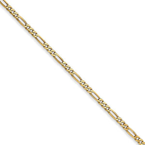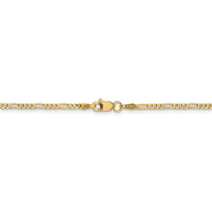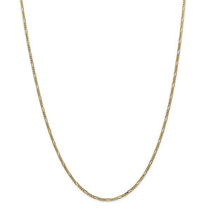A beautiful basic, perfect as a showcase for your favorite gold charm or pendant or layered with other chains. Measuring 1.8mm in width, this flat figaro 24-inch necklace created from polished 14k yellow gold features solid links and closes securely with a lobster claw clasp.
