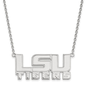 10k White Gold Louisiana State Large 'LSU' Pendant Necklace