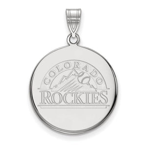 It is time to celebrate your favorite Major League Baseball (MLB) team, the Colorado Rockies! We are a certified retailer, and this authentic large unisex laser-etched pendant is officially licensed. It is created from rhodium plated 10k white gold and approximately 21mm in width (about the size of a nickel). Chain not included. Made in the USA This item is not currently in-stock. Once you place your order, please allow us 5 to 7 business days to make it for you.