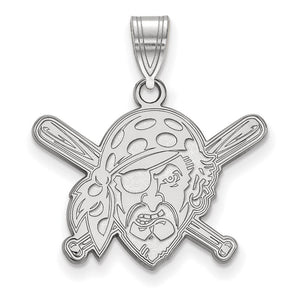 It is time to celebrate your favorite Major League Baseball (MLB) team, the Pittsburgh Pirates! We are a certified retailer, and this authentic women's medium laser-etched pendant is officially licensed. It is created from rhodium plated 10k white gold and approximately 21mm in width (about the size of a nickel). Chain not included. Made in the U.S.A. This item is not currently in-stock. Once you place your order, please allow us 5 to 7 business days to make it for you.