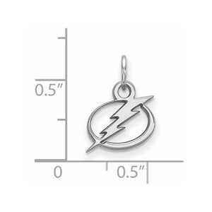 It is time to celebrate your favorite team, the Tampa Bay Lightning! This NHL bracelet charm or tiny necklace pendant created from rhodium-plated 10k white gold is officially licensed by the Tampa Bay Lightning and crafted in the USA. The approximate size is 11mm (7/16 inch) in width by 14mm (9/16 inch) in length with the bail. This item does not include a chain.