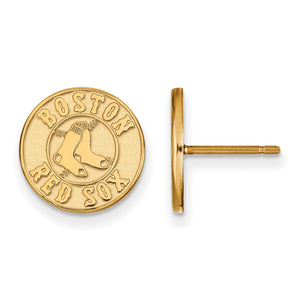14K Gold Plated Silver MLB Boston Red Sox SM Disc Post Earrings