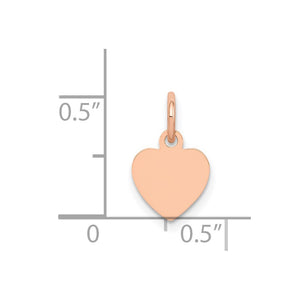 This heart disc charm pendant is crafted with 14 karat rose gold and it features a polished finish. The approximate size is 8 mm x 14 mm and its average item weight is 0.3 grams. This item does not include a chain.