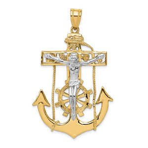 14k Two Tone Gold X-Large Mariner's Crucifix Cross Pendant, 35 x 58mm