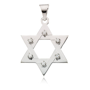 14k White Gold and Diamond Star of David Pendant, 19mm - Black Bow Jewelry Company