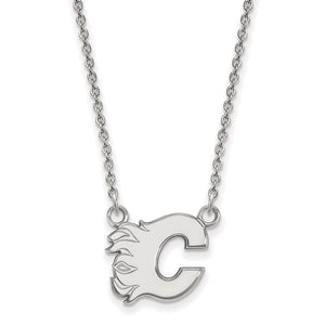 14k White Gold NHL Calgary Flames Small Necklace, 18 Inch