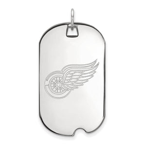 It is time to celebrate your favorite team, the Detroit Red Wings! This NHL large dog tag pendant created from rhodium-plated 14k white gold is officially licensed by the Detroit Red Wings and crafted in the USA. The approximate size is 24mm (15/16 inch) in width by 46mm (1 3/4 inch) in length with the bail. This item does not include a chain. This item is not currently in-stock. Once you place your order, please allow us 5 to 7 business days to make it for you.