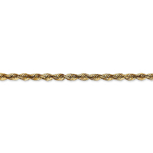 Spiraling rope chains made of 14k yellow gold enhanced with diamond-cuts are extremely popular because they offer a classic design with maximum shine. Lightweight yet durable, this solid link bracelet or anklet chain is 4mm in width by 9-inches in length and fastens with a lobster claw clasp.