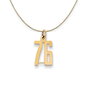 14k Yellow Gold, Alumni Small Elongated Number 76 Necklace