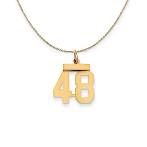Celebrate your favorite sports player, lucky number or milestone date in your life with a prominent 14k yellow gold charm. Each polished number is approximately 13mm (1/2 Inch) in length, which is finished with a 2mm top bar and a classic jump ring. The pendant is . Includes a 30 Inch, 0.8mm 14k yellow gold cable chain with a lobster clasp.