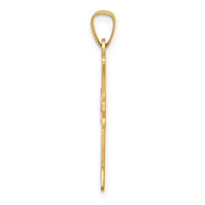 14k Yellow Gold Cutout Fleur de Lis Cross Pendant, 13 x 28mm