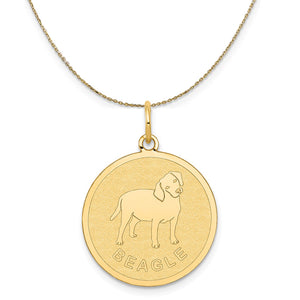 14k Yellow Gold Laser Etched Beagle Disc Necklace, 19mm - Black Bow Jewelry Company